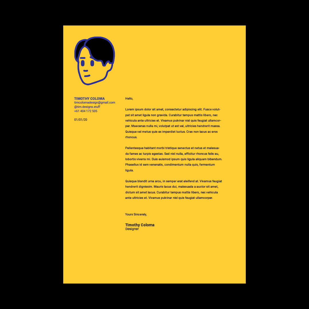 A dynamic, minimal personal brand centred around a bold side-profile illustration and vibrant primary colours — inspired by contrast and my ever-changing hair. The logo adapts to reflect my real-life look, and the brand extends across print, stationery, and wearable merch.